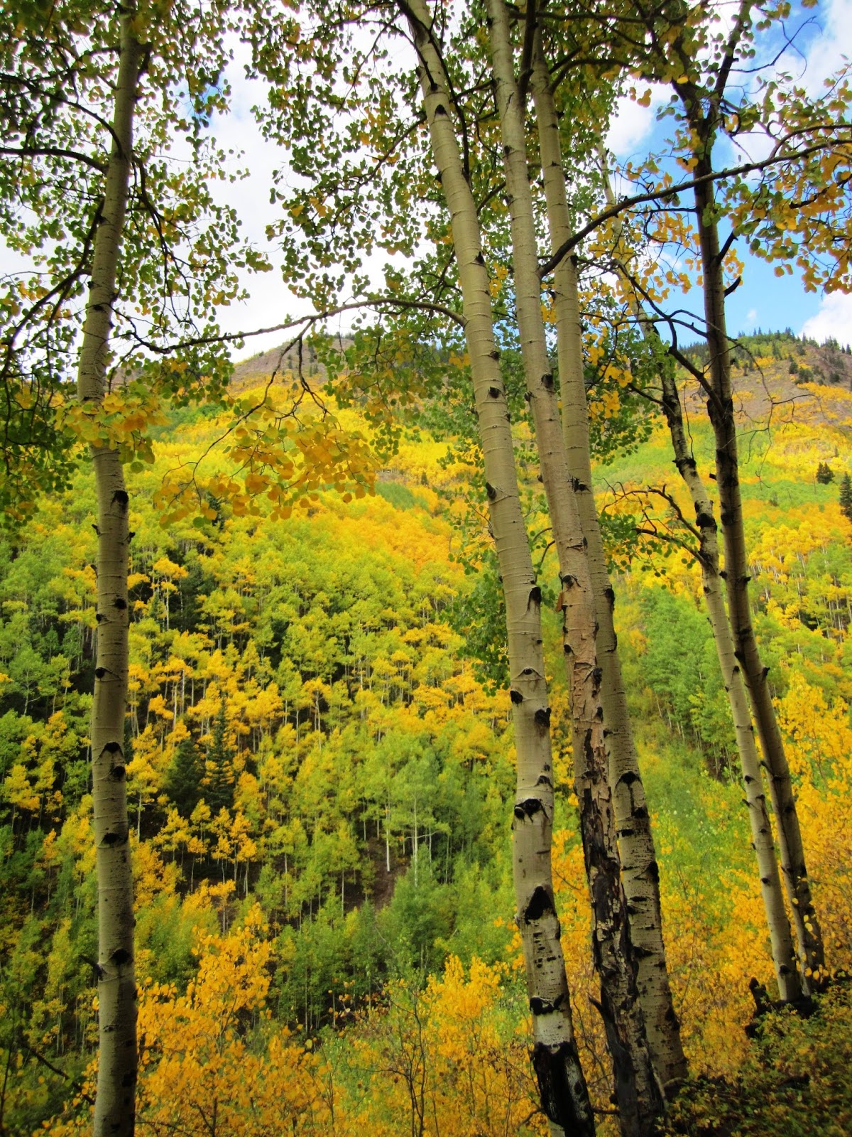 As we got closer to Lake City, I could tell that a lot of the aspens were light green and not completely changed - darn - it's really hard to predict when peak season will be in Sept!! Usually over that way they are a couple of weeks ahead of us so I booked our cabin early, thinking we would hit peak - but it wasn't to be this year! Needless to say, the leaves were STILL gorgeous, even though they all hadn't turned yet!!