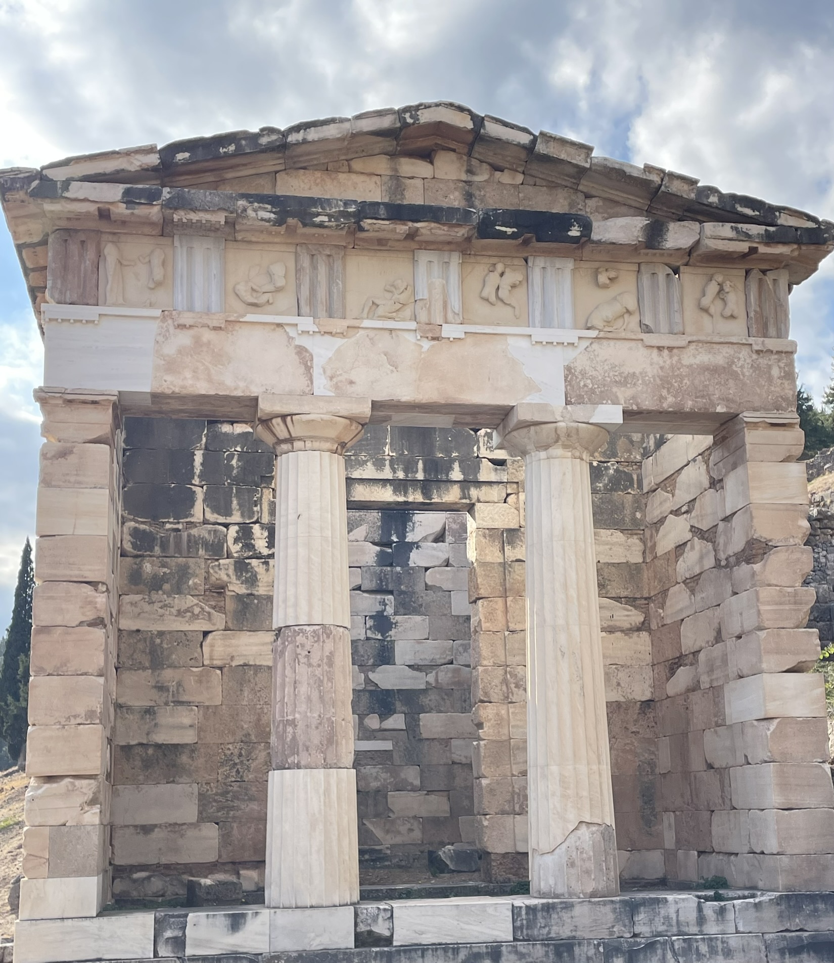 Delphi was an ancient religious sanctuary dedicated to the Greek god Apollo! The sanctuary was home to the Oracle of Delphi and the priestess Pythia, who was famed throughout the ancient world for divining the future and was consulted before all major undertakings!