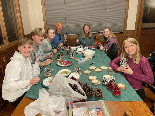 It's Jan 2nd - time to head to Estes Park for our annual Christmas get-together!! HOORAY! We've all been anxiously awaiting this special time! This year there will be 19 of us which includes Rayna's boyfriend, Hezekiah and Evan's girlfriend, Reese! And we're also excited because this year we booked 2, 4 bedroom VACATION cabins which are a step up from our cabins we usually get - which means they do have a LOT more room and includes nice leather furniture, tv's on both floors and a family room downstairs! The best part of renting these is that Jill did the booking this year and she got a 50% discount since she works in the school system! WOW! That sure made a difference on the price!