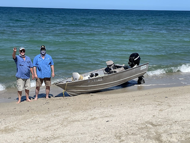 Since it was SO windy out and no way the guys could fish here in Glenn's small boat, they decided to talk to a friend here and get a charter lined up out of LaPaz - which meant heading to Lapaz on Sunday afternoon for an early morning charter on Monday. But wait - Jaime has a flight out on Monday and they're taking the car!!